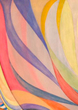 Wheel within a Wheel 104 shows evidence of this use of negative and positive space along with Wheel within a Wheel 101 and 103. Wheel within a Wheel 102 and 105 reveal a more subtle dynamic of positive and negative space, since the emphasis became the interplay of color and form and creating a harmonious balance within the design field.